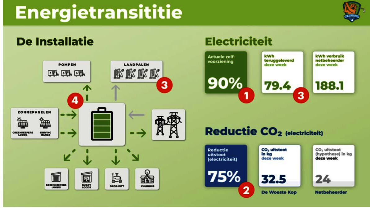 De succesvolle crowdfunding op De Woeste Kop toont nog maar eens het belang aan dat de leden toekennen aan de energietransitie. De impact van de investering is te zien op een dashboard in de hal van het clubhuis.